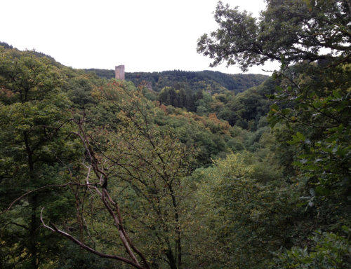 die Manderscheider Burgen, deren Turmruinen imposant in die Höhe