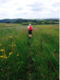 Von nun an geht es fast nur abwärts, über Wiesenpfade, durch den