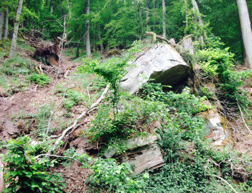 Wald. Immer abwärts, abwärts, abwärts und dann merken wir plötzlich