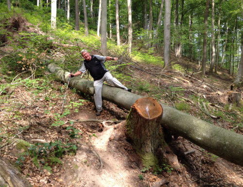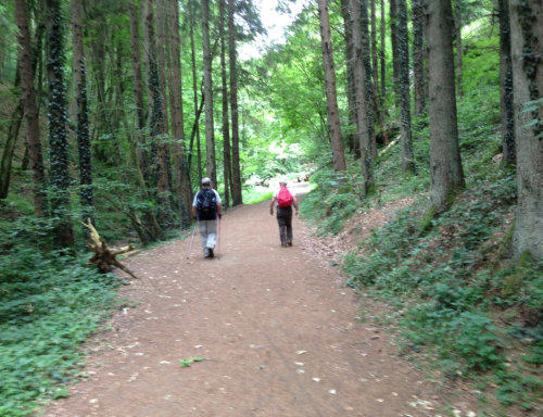 den Wald. Und gleich mit einer ziemlichen Steigung.