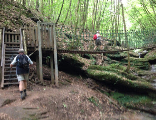 sogar über zwei Hängebrücken. So macht wandern Spaß.