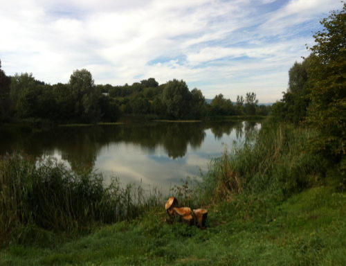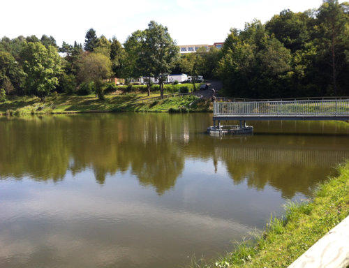 Weiter geht es am Waldrand entlang zum kleinen Stausee
